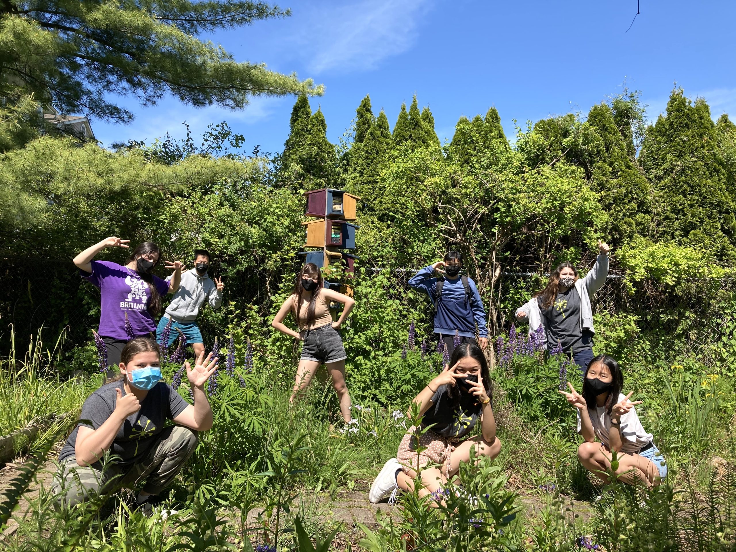 A group of Nature Stewards youth in Strathcona Community Gardens.